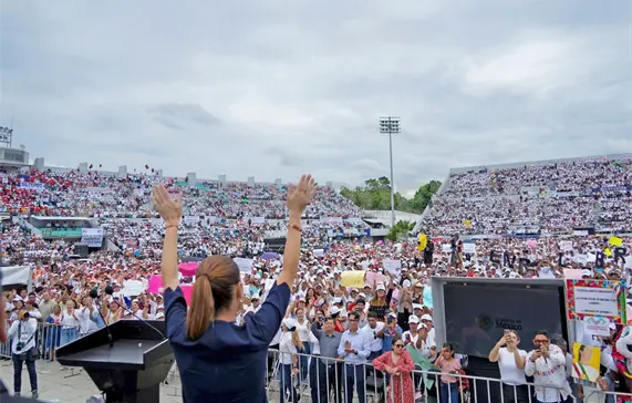 “Es muy importante el desarrollo de esta zona, quiere decir industrialización de diferentes formas y hacer de Tapachula —que ya lo es, pero es la visión— el centro, no solamente de Centroamérica, sino también de nuestro país, la primera frontera. La Secretaría de Marina está licitando dos Polos de Desarrollo para Bienestar aquí en Tapachula, que junto con el Tren Interoceánico, la Línea de la Transformación y Puerto Chiapas se van a convertir en un desarrollo muy importante para los siguientes años”, anunció ante un lleno total en el estadio Olímpico de Tapachula.