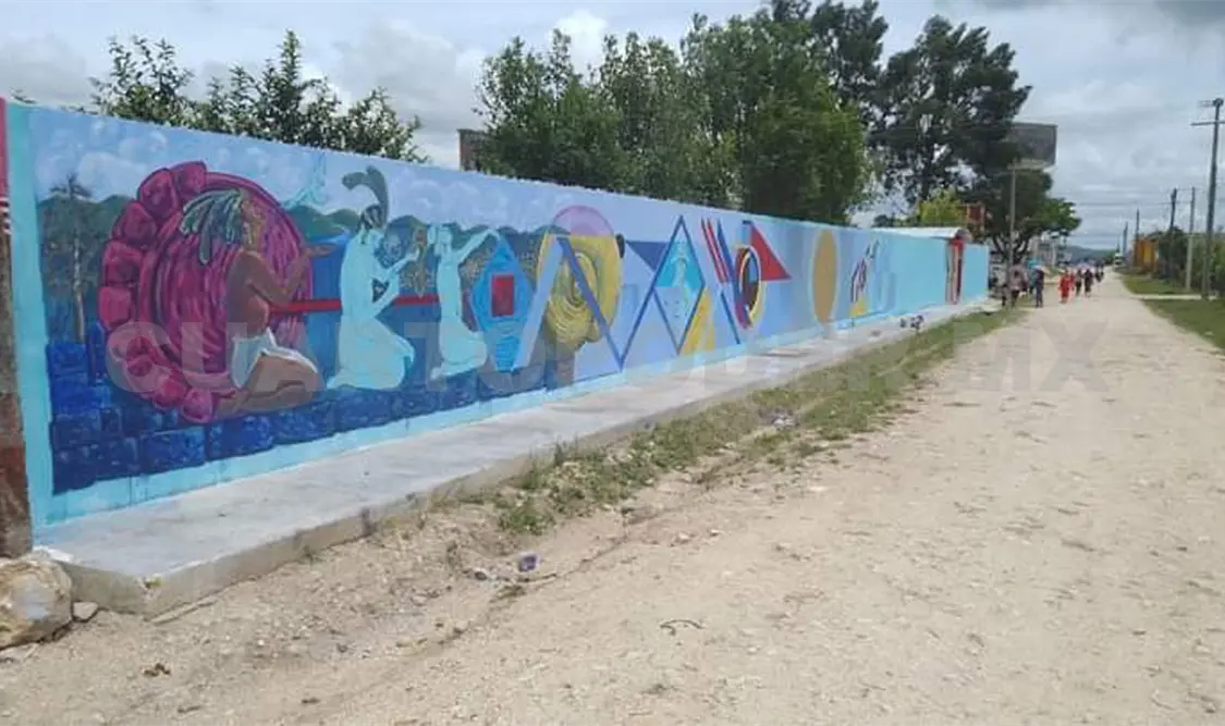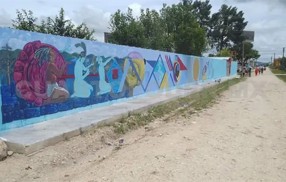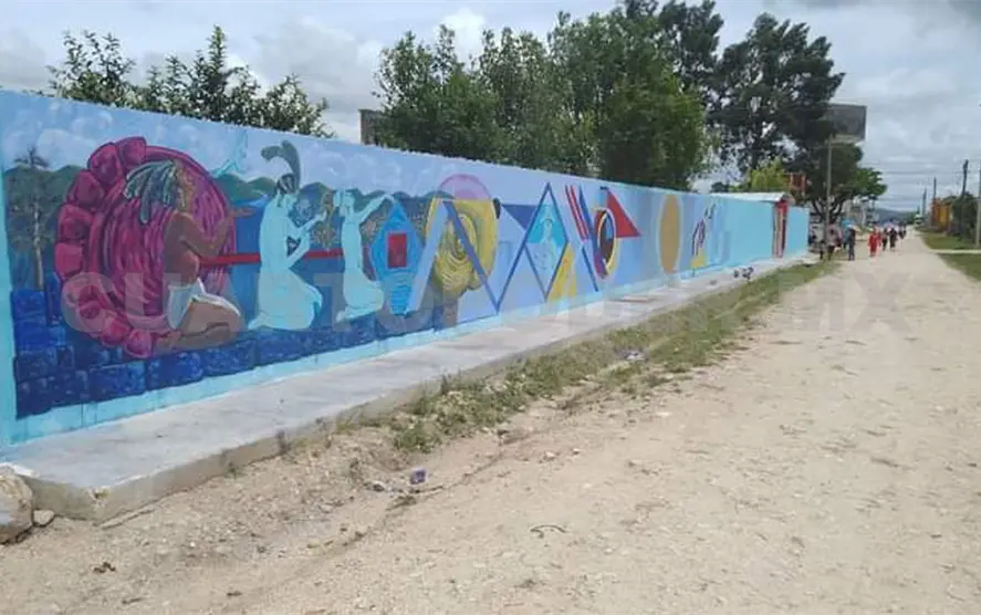 El mural “Identidad de mi tierra” se encuentra en proceso de creación en el Jardín de Niños “Emilio Rabasa Estebanell”, en la colonia Venustiano Carranza.