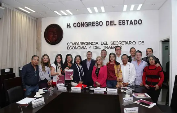 Lo anterior, al comparecer ante las y los diputados de las comisiones de Trabajo y Previsión Social, y de Promoción Comercial y Fomento a la Inversión de la LXVII Legislatura del Congreso del Estado, como parte de la Glosa del Primer Informe de Gobierno.