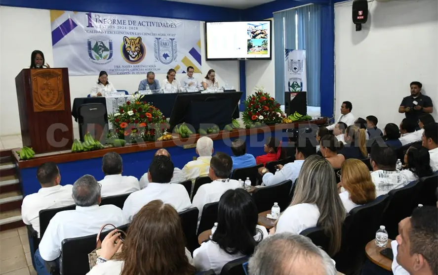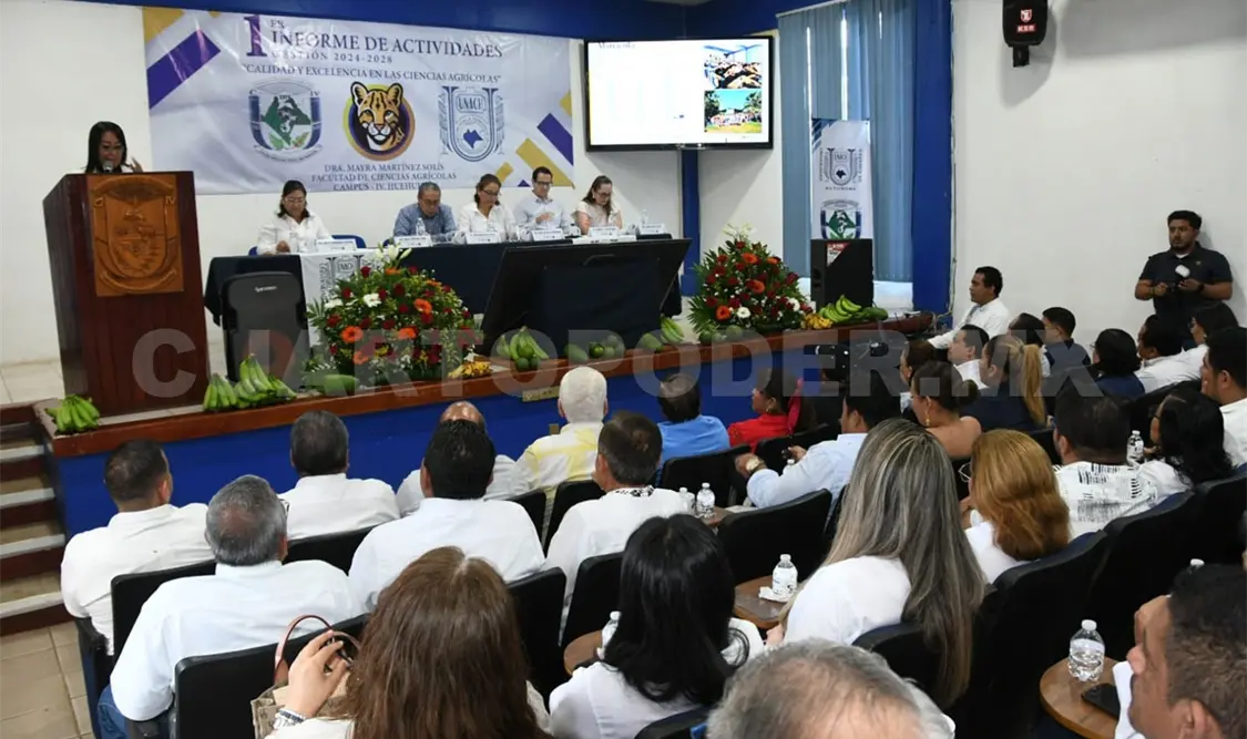 Rindió su primer informe de actividades, Gestión 2024-2028, la directora de la Facultad de Ciencias Agrícolas, Campus IV, de la Benemérita Universidad Autónoma de Chiapas (Unach), Mayra Martínez Solís, ante los integrantes de la Junta de Gobierno, la comunidad docente y estudiantil de esta unidad académica.