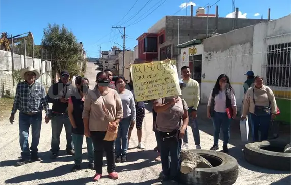 Pobladores de la colonia Jardines del Carmen, ubicada al sur de San Cristóbal, cerraron algunas calles para impedir el ingreso de camiones y maquinaria utilizados para construir un muro de contención para la colonia vecina San Francisco.