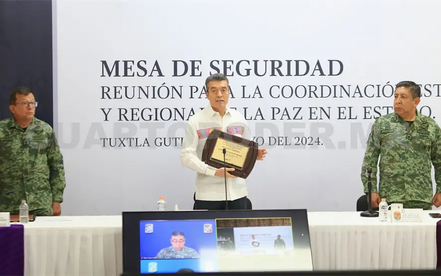 Desde las actividades que se llevan a cabo en la Mesa de Coordinación Estatal para la Construcción de la Paz y la Seguridad, el gobernador Rutilio Escandón Cadenas felicitó a la Secretaría de Protección Civil por su 14 aniversario.
