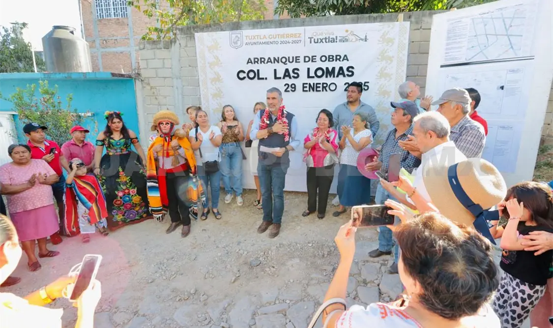 El presidente municipal de Tuxtla Gutiérrez, Ángel Torres Culebro, puso en marcha los trabajos de pavimentación en la 15ª avenida Sur, entre calle Doctor Manuel Velasco Suárez y 11ª calle Oriente, en beneficio de las familias de la colonia Las Lomas. Acompañado de vecinas y vecinos, quienes externaron que tenían más de 30 años esperando esta obra, el edil explicó que esta vialidad será de concreto hidráulico, con red de agua potable y drenaje, señalética, alumbrado público y banquetas.