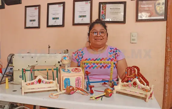 Recientemente, obtuvo el segundo lugar en el Concurso Estatal de Juguetería Tradicional Popular con una sastrería en miniatura compuesta por 43 piezas.