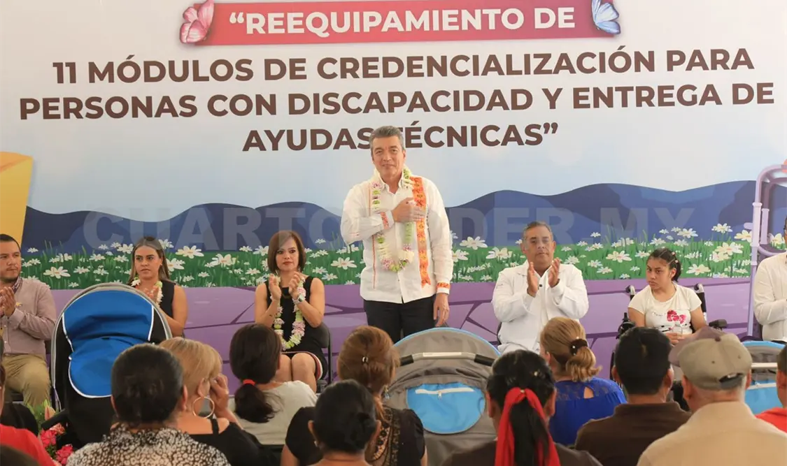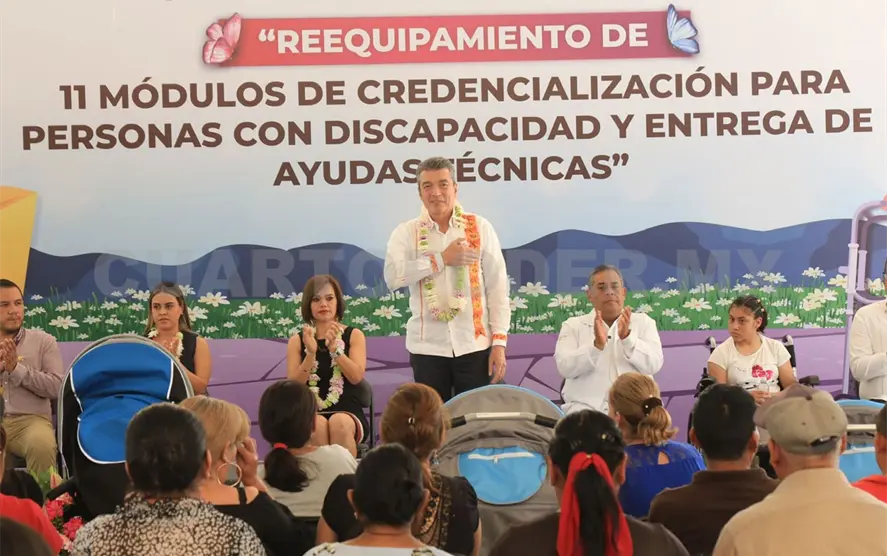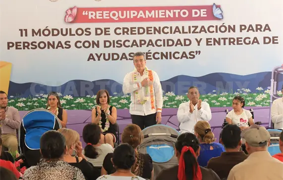 En este marco, el mandatario también llevó a cabo la entrega de equipamiento a 11 módulos de credencialización para personas con discapacidad, en diferentes regiones de la entidad, donde destacó que con estas acciones se contribuye a que las personas en esta condición cuenten con una identificación que les permita acceder a servicios y programas a favor de sus plenos derechos.