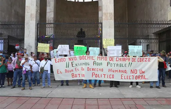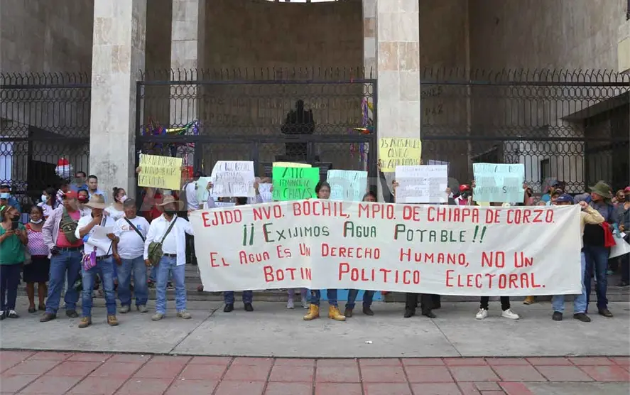 Falta de agua potable, energía eléctrica, calles en mal estado y niños recibiendo clases bajo los árboles, motivaron a los pobladores del ejido Nuevo Bochil, municipio de Chiapa de Corzo, a realizar una marcha y mitin en las calles de Tuxtla Gutiérrez.