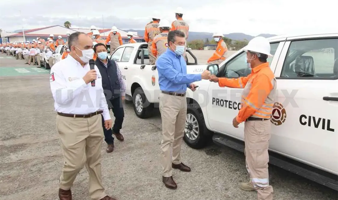 A fin de fortalecer la operatividad del personal de Protección Civil (PC) en beneficio de la población de Chiapas, principalmente la que se encuentra en condiciones de mayor vulnerabilidad, se renovó el parque vehicular y se dotó de equipo al Laboratorio para Prácticas de Urgencias Médicas Prehospitalarias.