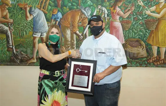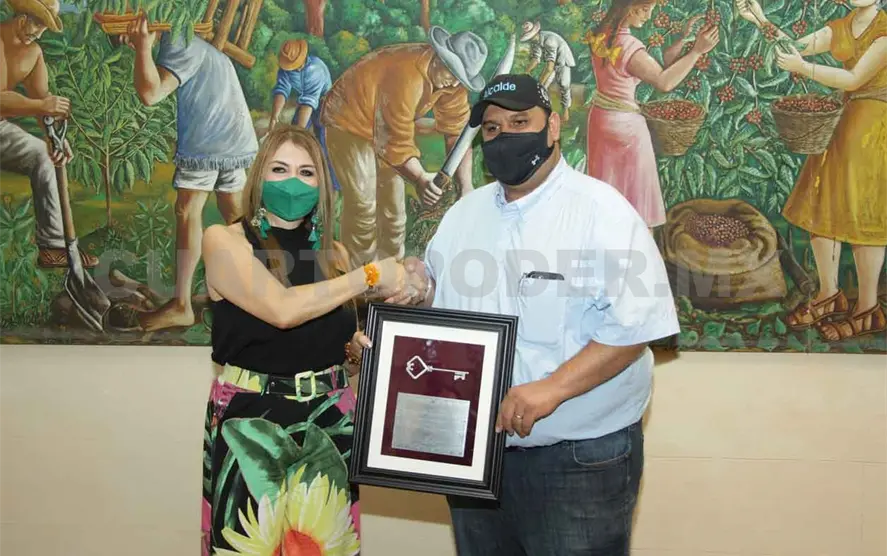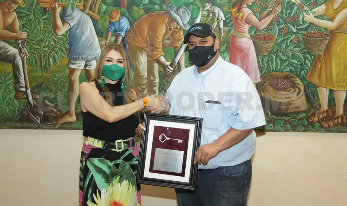 En el marco de la declaración de Ciudades Hermanas entre Tapachula, Chiapas y Santa Ana, El Salvador, la presidenta municipal, Rosa Irene Urbina Castañeda, hizo entrega de las Llaves de la Ciudad a su homólogo Gustavo Acevedo Berganza.