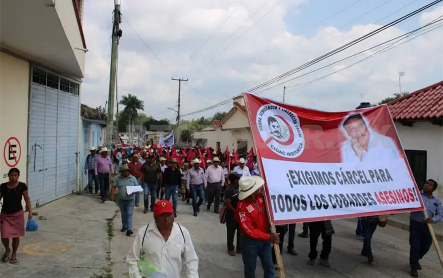 Integrantes de la Central Independiente de Obreros Agrícolas y Campesinos (Cioac) Histórica, realizaron una marcha pacífica en las principales calles de Las Margaritas durante la tarde del domingo para exigir justicia por el asesinato del líder campesino, Luis Hernández Cruz.