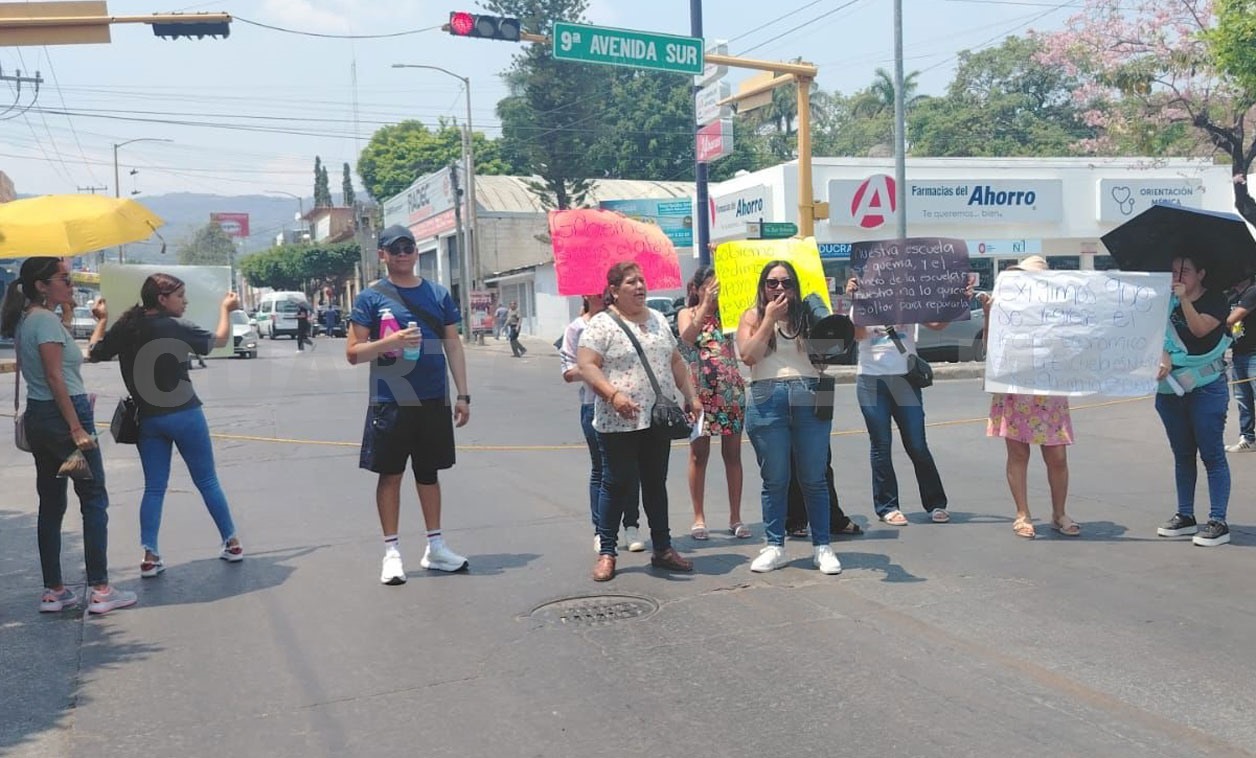 Padres de familia de niños inscritos en el Preescolar Nicolás Bravo Rueda, en Tuxtla Gutiérrez, realizaron una manifestación exigiendo mejores condiciones en la escuela, donde recientemente ocurrieron estallidos por corto eléctrico.