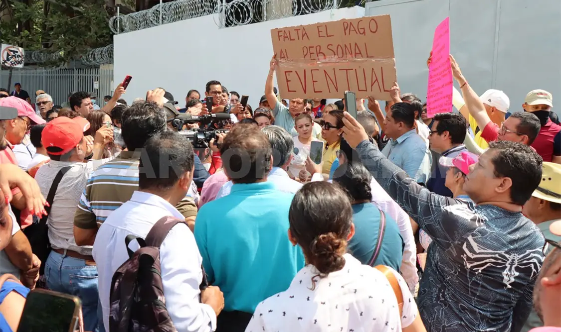 Jazmín Aguilar Figueroa, personal adscrito a la Secretaría de Educación, explicó que no solo los trabajadores eventuales están siendo afectados, pues a 95 trabajadores de base y de confianza tampoco les han pagado.