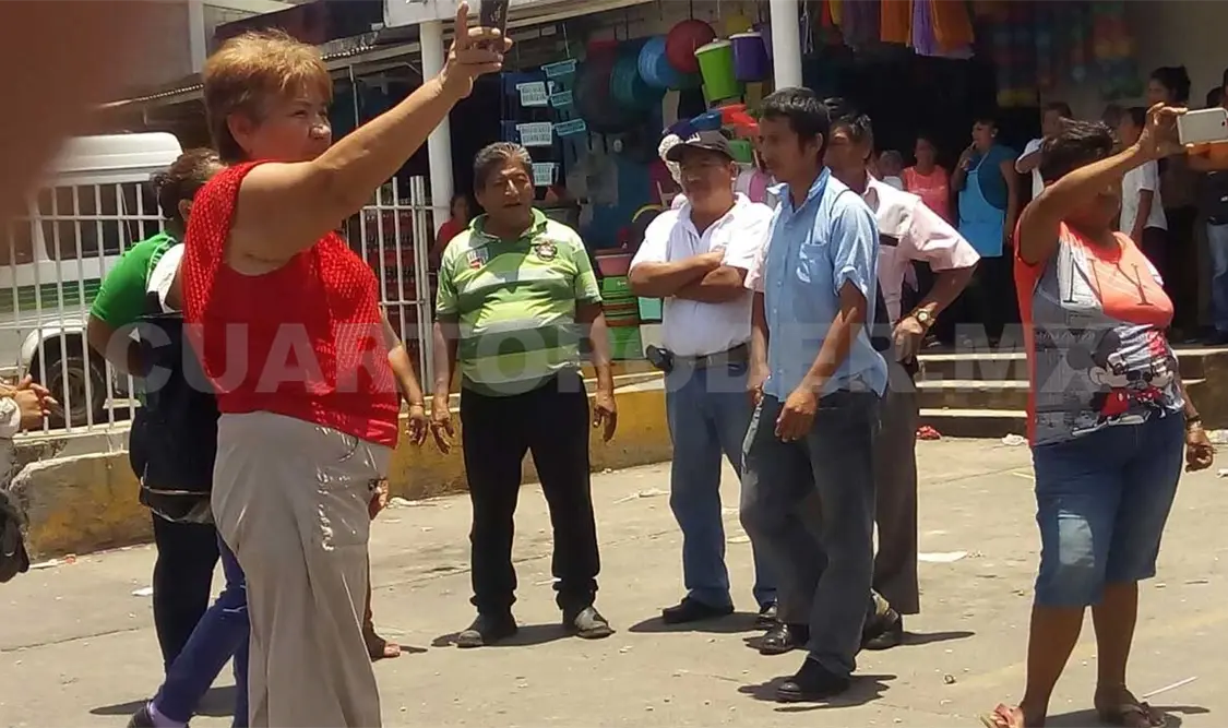 Unas 30 personas encabezadas por Fernando Robledo y José Antonio Gómez Díaz, llegaron hasta la terminal de esa cooperativa y en la explanada del Mercado San Juan exigieron a Pérez Velázquez que les regrese el dinero que le dieron.