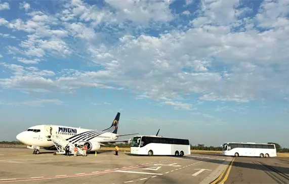 El traslado de los migrantes hacia el aeropuerto se dio bajo el resguardo de elementos de la Guardia Nacional.