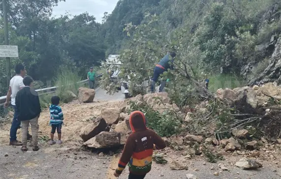Desde la tarde de ayer (lunes), personal de Protección Civil labora en el lugar retirando todo el material pétreo que se encuentra en la vía.