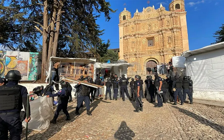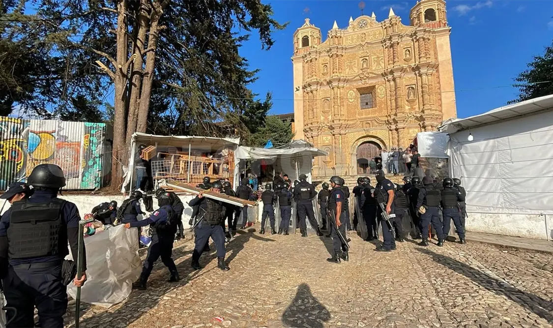Artesanos que tenían sus puestos en la entrada principal de Santo Domingo de Guzmán en San Cristóbal de Las Casas, fueron desalojados la tarde de este jueves por elementos de la Policía Municipal.