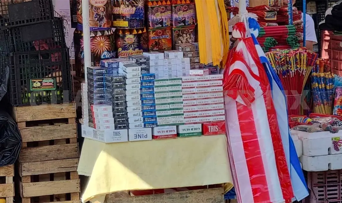 En mercados de Tapachula donde se venden cantidades industriales de cajas completas de cigarros —las cuales tienen origen desconocido y pese ello son introducidos a nuestro país por contrabando—, algunos comercios que expenden este producto lo mantienen exhibido a la vista de todos y sin acatar la entrada en vigor de la Ley General para el Control del Tabaco.