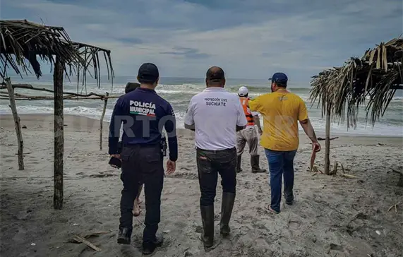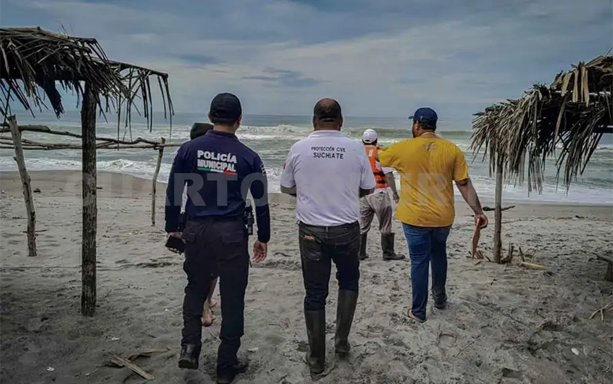 En la parte baja del municipio de Suchiate, ante el azolvamiento de la barra de río Cahoacán que provocó encharcamientos en la zona aledaña al mar, pobladores de la comunidad Brisas del Mar, autoridades municipales tanto de Protección Civil como de otras instancias, trabajaron con fuerza de trabajo local y maquinaria para abrir un canal que permitiera desahogar los encharcamientos.
