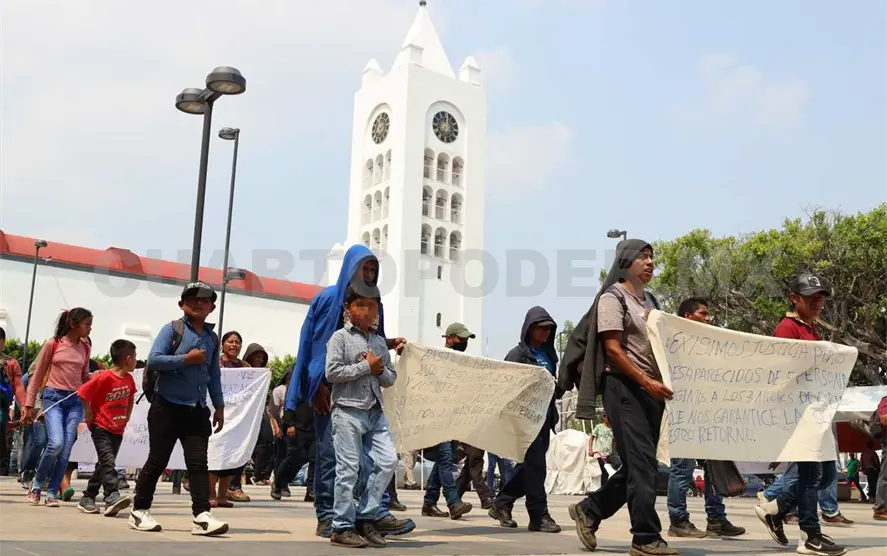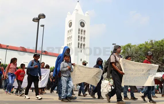 Familias desplazadas de Santa Martha, en San Pedro Chenalhó, marcharon en Tuxtla Gutiérrez para exigir la atención de las autoridades, pues aseguran que se les ha dejado en el abandono.