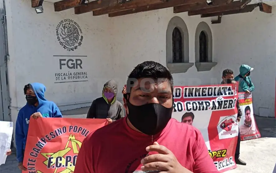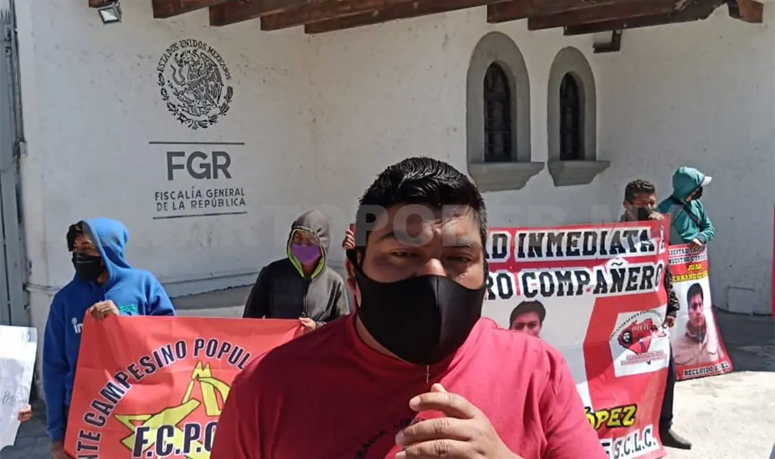 Integrantes de la Confederación Independiente de Organizaciones Asociación Civil (Cio-AC), adherentes del Frente Campesino Popular, se manifestaron este miércoles para exigir castigo a los asesinos de su líder Juan Carlos Jiménez Velasco, la libertad de su compañeros Juan Hernández López y el retorno a la colonia Santa Catarina.