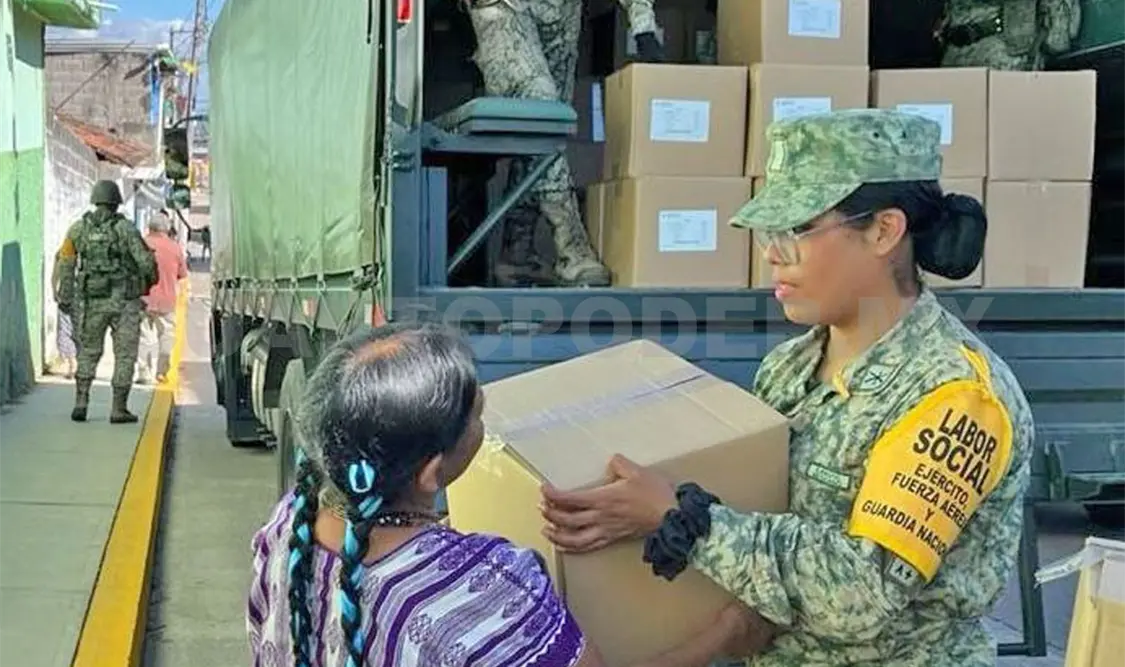 También se entregan despensas en las plazas públicas y casa por casa, además de ofrecer consultas médicas, principalmente a las mujeres y niñas de la cabecera municipal.