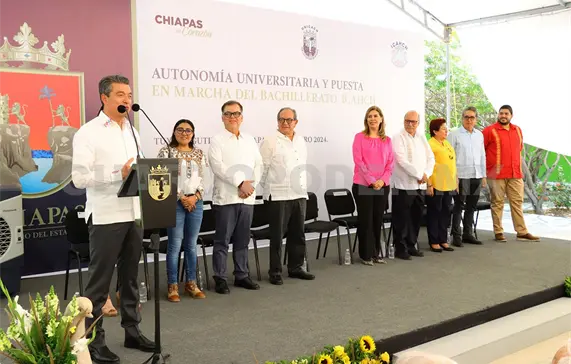 “Me da gusto que volvamos al origen como en 1945, cuando se conjuntó la secundaria del estado, la preparatoria y la normal. Hoy, la Unicach tiene autonomía plena y está en una edad adulta para ejercer libertad de cátedra y decidir el destino de la máxima casa de estudios. Y esto es el reflejo de una verdadera evolución que necesitamos en Chiapas, lo que da fortaleza a la presencia de nuestros principios y valores emanados de nuestra milenaria cultura maya en el estado”, afirmó.