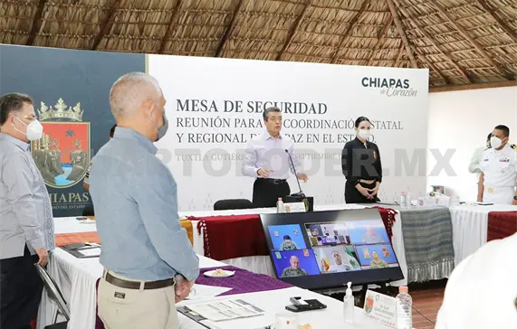 En el marco de la Mesa de Seguridad, que contó con la presencia de la secretaria de Igualdad de Género (Seigen), María Mandiola Totoricaguena, el gobernador destacó los resultados favorables del trabajo que las autoridades realizan en los pueblos y las comunidades de la entidad, con el objetivo de fortalecer las acciones a favor de la seguridad, el bienestar, el respeto a los derechos y de garantizar una vida libre de violencia a las niñas y mujeres chiapanecas.