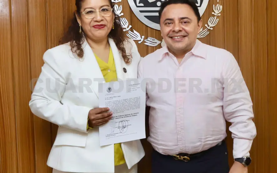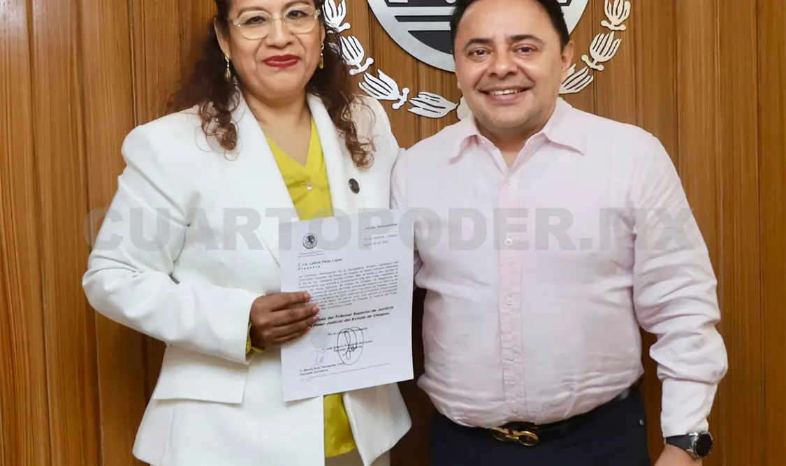 El magistrado presidente del Poder Judicial del Estado de Chiapas, Juan Carlos Moreno Guillén, sostuvo una reunión con la recién nombrada magistrada Leticia Pérez López, quien se desempeñaba como jueza de lo familiar.