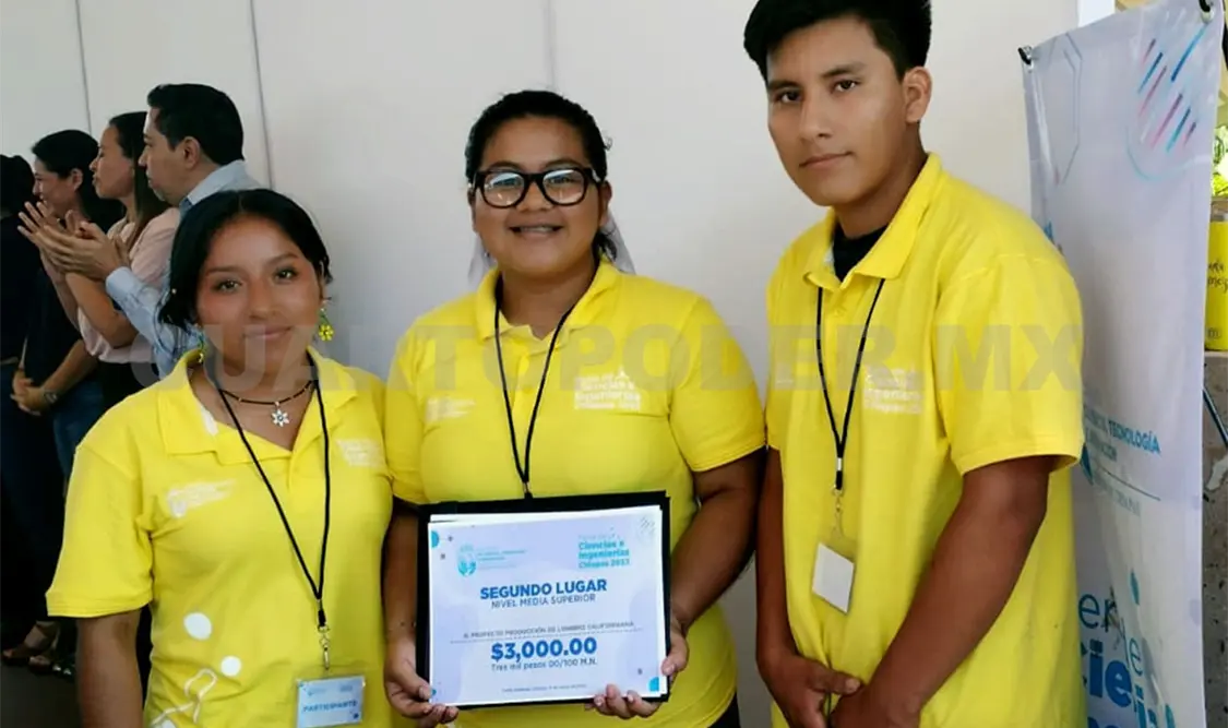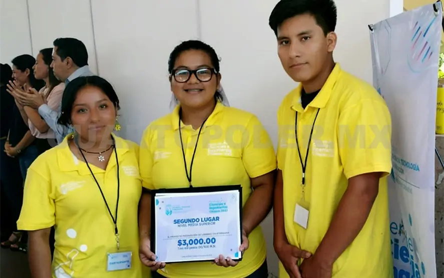 Mientras que las alumnas Livia Jiménez López y Leslie Monserrat Mayo Arcos, con la asesoría de Milton Romeo López Chacón, del Cecyte 33 Frontera Corozal, del municipio de Ocosingo, ganaron la segunda posición al presentar el trabajo “Producción de lombriz californiana”.