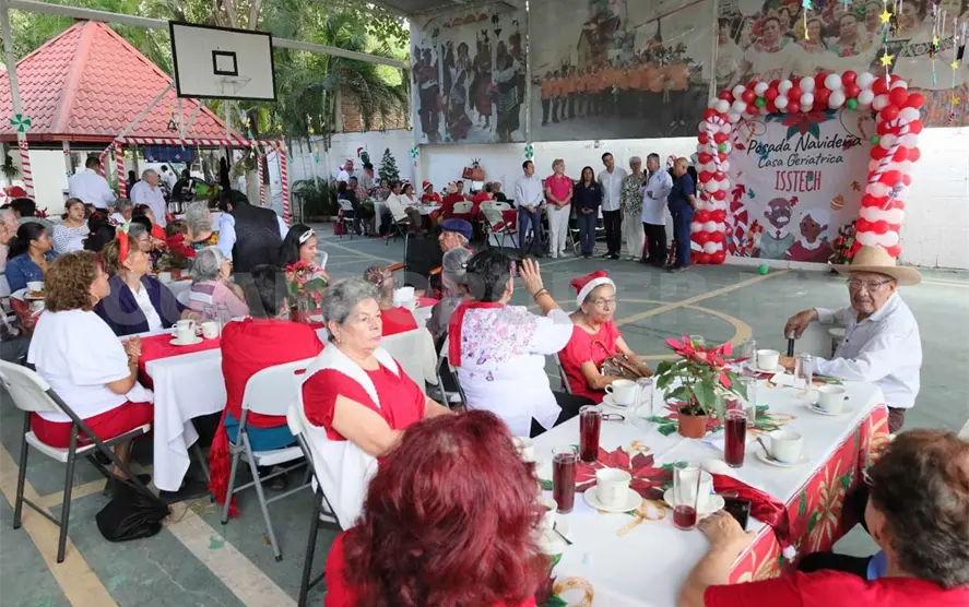 El director general del Instituto de Seguridad Social de los Trabajadores del Estado de Chiapas (Isstech), Armando Barrios Fierro, participó en la tradicional posada navideña organizada por la Casa Geriátrica Tuxtla, un evento que reunió a las personas adultas mayores que asisten diariamente a este centro de atención.