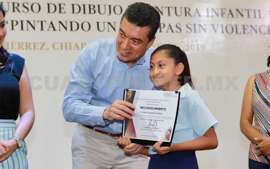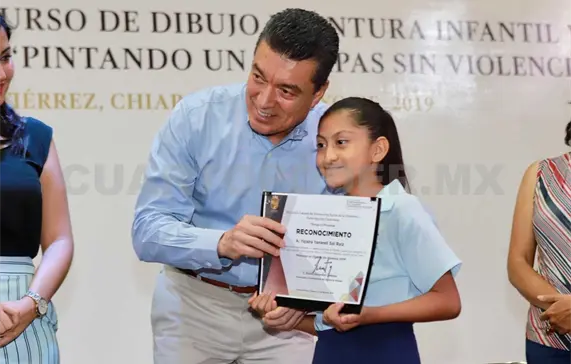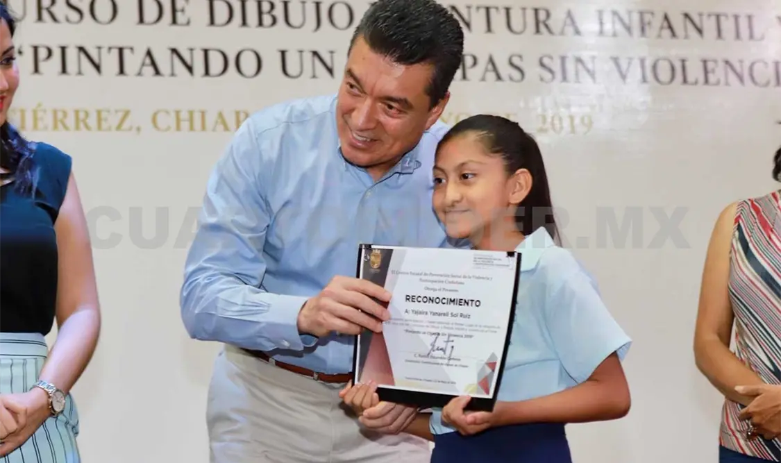 Durante la premiación a las y los ganadores del Primer Concurso de Dibujo y Pintura Infantil y Juvenil “Pintando un Chiapas sin violencia 2019”, el mandatario expresó la importancia de involucrar a la niñez y a la juventud en estrategias donde puedan expresarse de manera sana y directa a fin de asegurar su integridad física y emocional, tal como se hace a través de esta iniciativa artística.