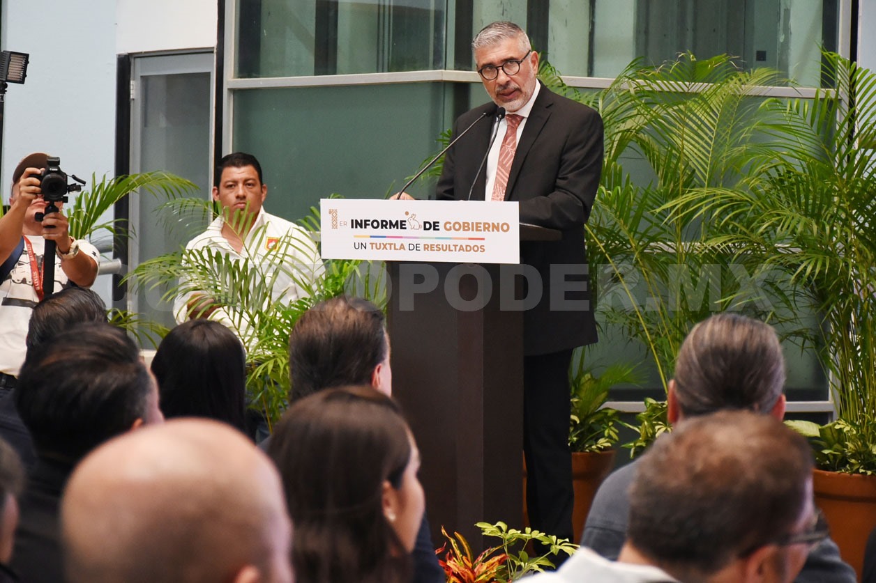 Este 30 de septiembre, en el patio cívico del Ayuntamiento, se llevó a cabo el primer Informe de Gobierno del presidente municipal de Tuxtla Gutiérrez, Ángel Torres Culebro, donde se presentó un balance de las acciones realizadas en el primer año de su administración, subrayando la coordinación entre dependencias y participación ciudadana como eje central de su gestión. Ante esto, funcionarios municipales resaltaron los avances logrados y el apoyo otorgado por parte del edil en diversos rubros como seguridad, servicios públicos, infraestructura y programas sociales.