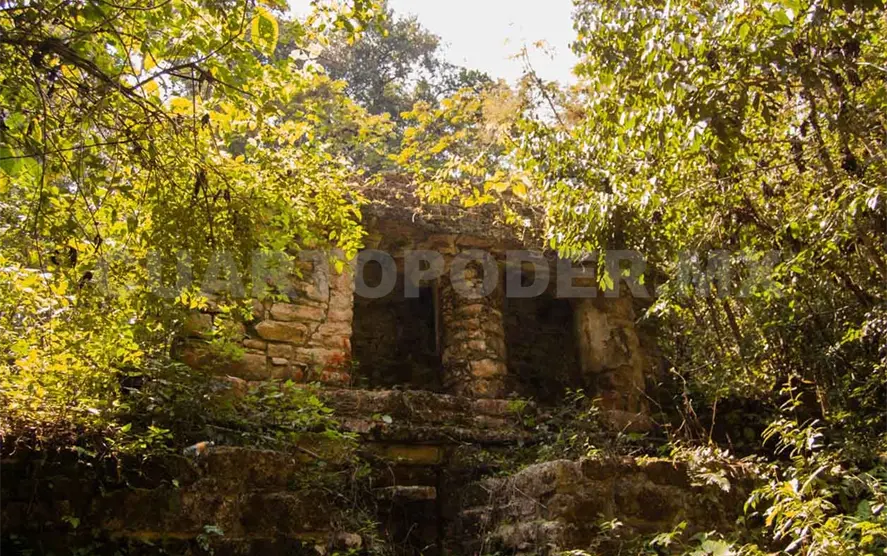 Esta edificación, dijo, tiene una bóveda escalonada la cual fue tratada con cal, observando vanos en la entrada con un estilo particular, pues cuenta con lajas pequeñas de estuco rojo y naranja interpuestas, lo que las hacían más inestables al paso del tiempo y en donde pusieron varillas para mantener su posición.