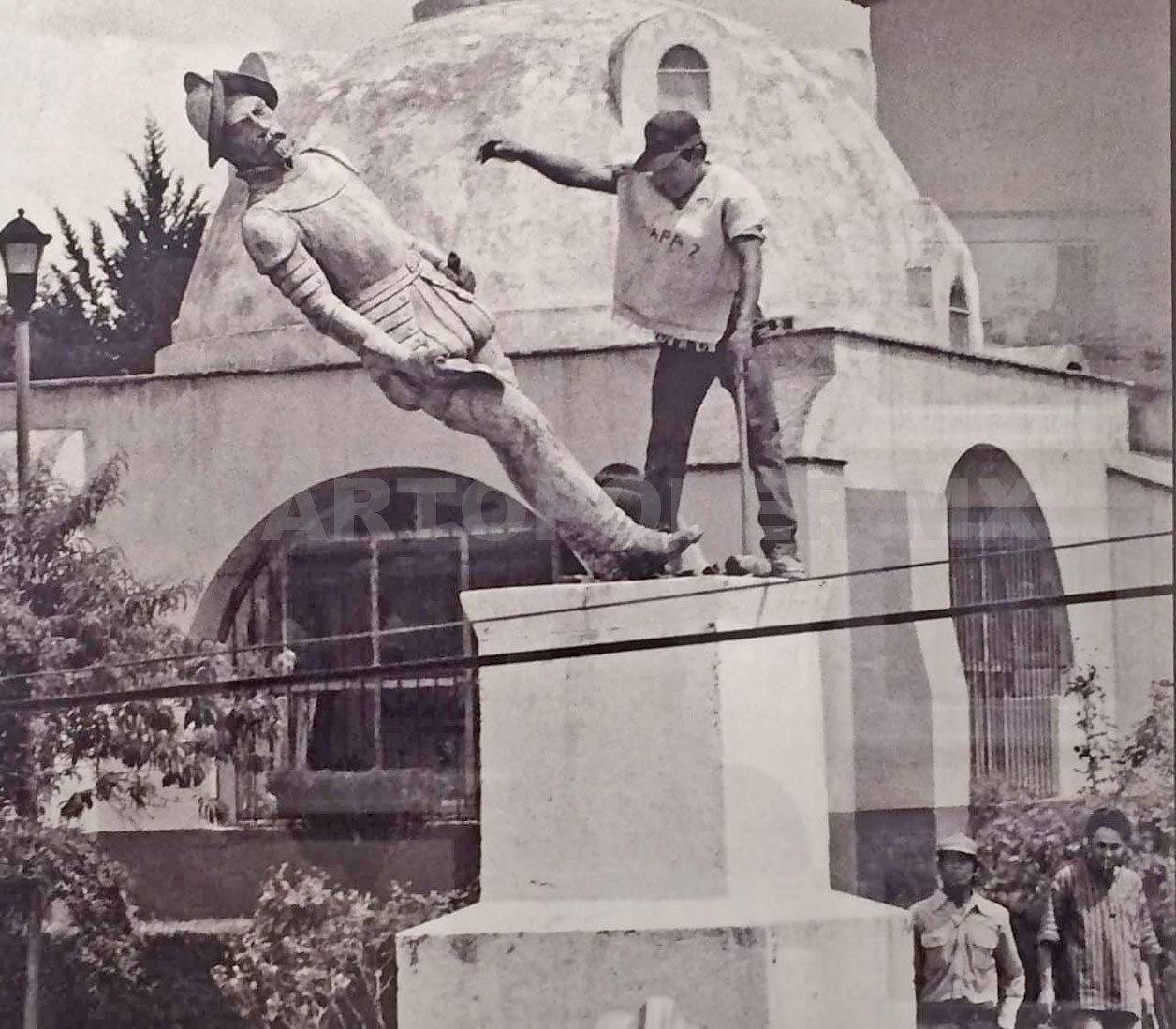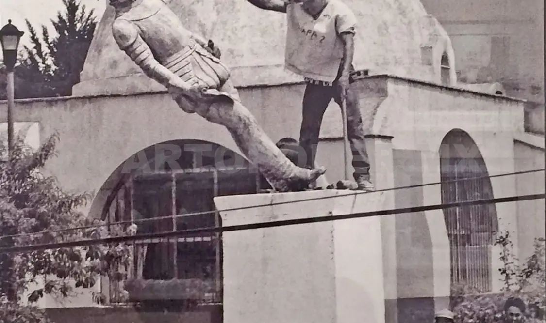 Recordar que la estatua de metal se encontraba frente al templo de Santo Domingo, en el centro histórico, antes de que fuera tirada a martillazos.