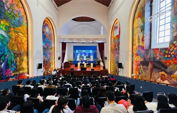 Ante el rector Carlos Faustino Natarén Nandayapa, el director de la Facultad de Derecho, Miguel Ángel de los Santos Cruz, y la coordinadora del seminario y profesora investigadora de la Universidad Autónoma de Tlaxcala, Marla Daniela Rivera Moya, expuso causas, naturaleza y reflexiones acerca del tema.