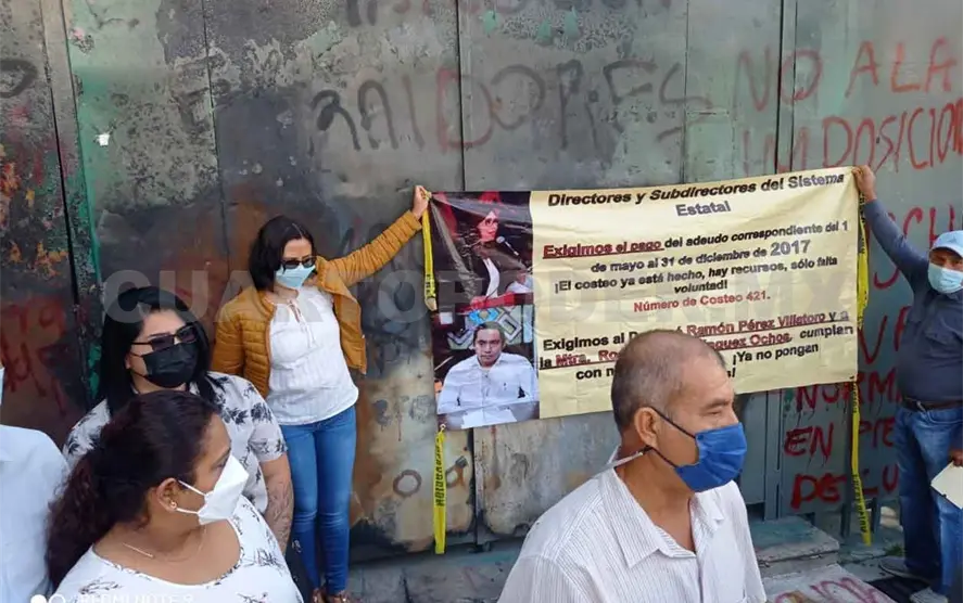 Los afectados pertenecen al sistema educativo estatal preescolar, primaria y telesecundaria, quienes exigen los salarios por el servicio prestado desde el primero de mayo del 2017 a diciembre del mismo año.