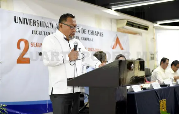 El director de la Facultad de Arquitectura de la Unach, Marco Antonio Moreno Domínguez, rindió su Segundo Informe de Actividades de la Gestión 2022-2026, ante la comunidad de la Unidad Académica y directivos de la Administración Central.