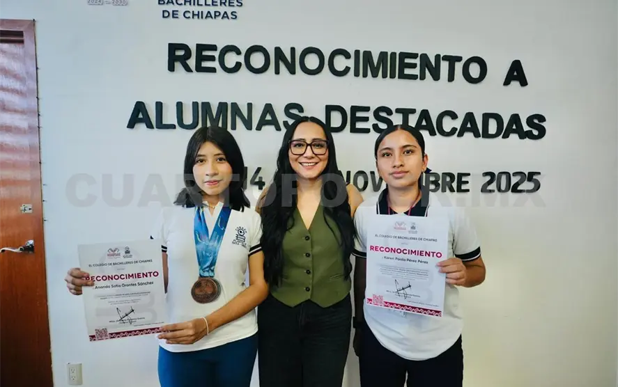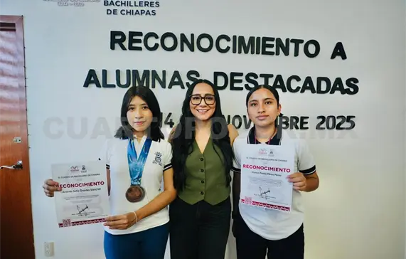 Con el propósito de enaltecer el talento y el esfuerzo de la juventud cobachense, la directora general del Colegio de Bachilleres de Chiapas (Cobach), Viridiana Figueroa García, hizo entrega de reconocimientos a dos alumnas destacadas en el ámbito deportivo y académico.