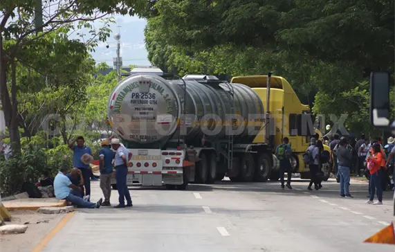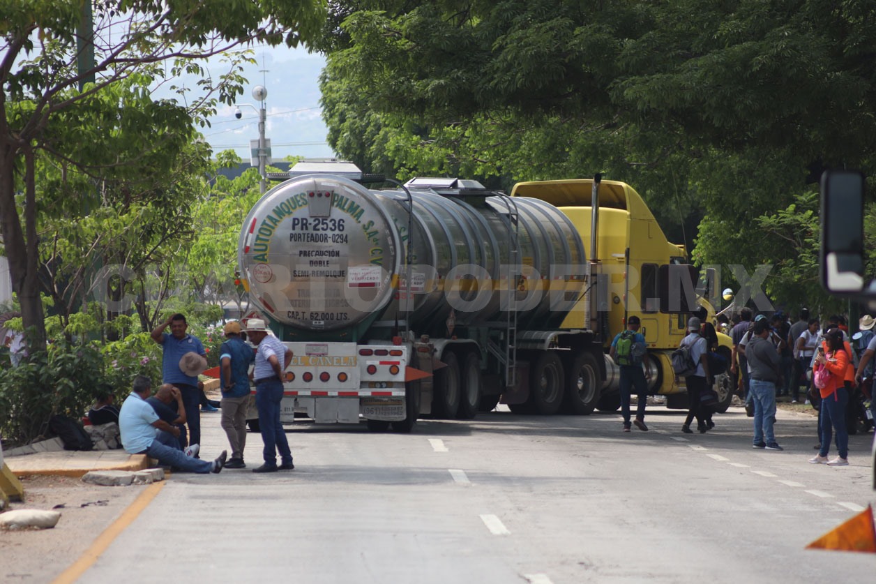 Alrededor de las 9 de la mañana, los contingentes de maestros arribaron al punto conocido como la Pochota para bloquear completamente la circulación vehicular en ambos sentidos con autos, piedras e incluso una pipa doble remolque.