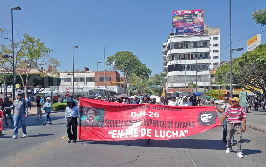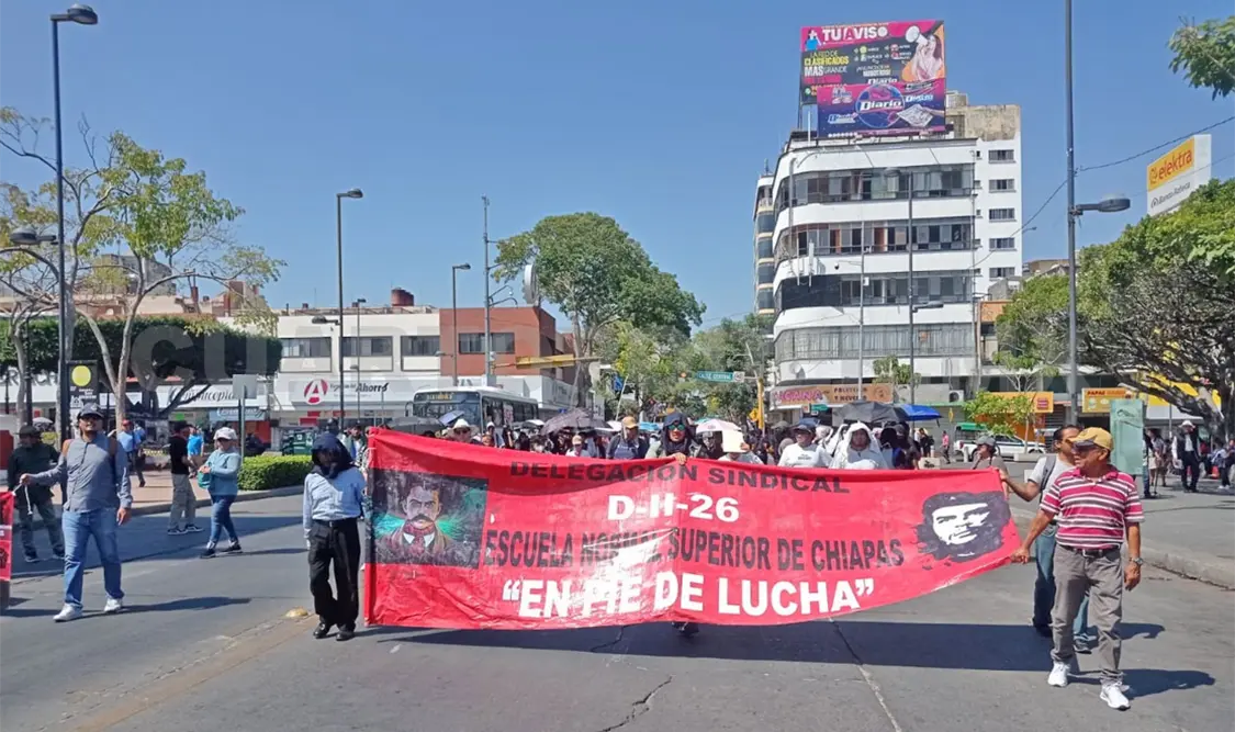 Por su parte, maestros de la delegación D-226 de la Escuela Normal Superior de Chiapas (ENSCH) realizaron un bloqueo en el centro de la capital chiapaneca para exigir una mesa de diálogo tripartita con la Secretaría de Educación (SE), ante la falta de respuesta a sus demandas laborales y académicas que mantienen sin clases a los estudiantes desde el 9 de febrero.