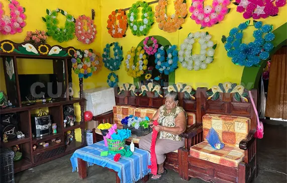 Vecina del barrio Santo Domingo al sur poniente de Cintalapa, “Doña Tere” como es conocida, inicia la elaboración de estas manualidades desde el mes de septiembre, ya que previo a los festejos de todos los santos, la demanda de estos adornos se incrementa en un cien por ciento.