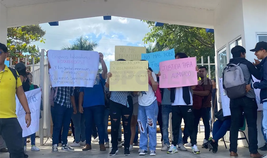 Cerca de las 14:00 horas estudiantes del Instituto Tecnológico Superior de Cintalapa por sus siglas ITSC, se pronunciaron en inconformidad con varias pancartas en el portón de acceso del área educativa, señalando la falta de apoyo por parte de su director Hernán López Vázquez.