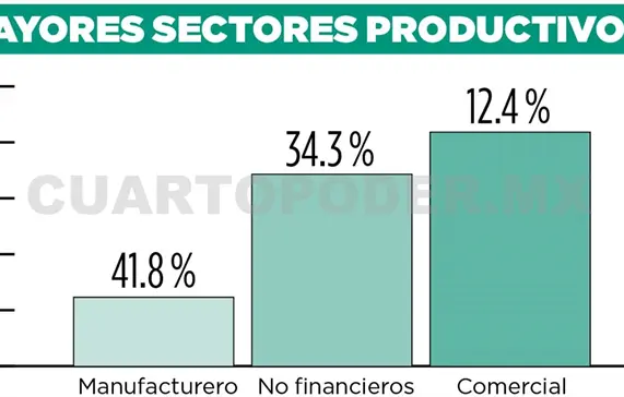 El sector económico que más ha aportado al crecimiento de la entidad es el comercial con el 41.8 por ciento, seguido de los servicios no financieros con el 34.3 por ciento y por último el manufacturero , mismo que tuvo una alza pasando del 11.3 al 12.4 por ciento.