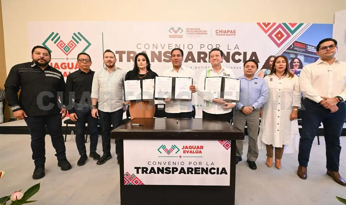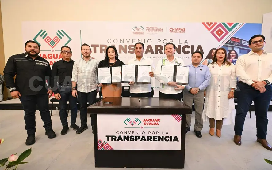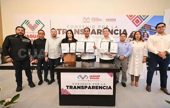 El gobernador Eduardo Ramírez Aguilar participó en la firma del Convenio por la Transparencia donde reiteró que su administración tiene un único compromiso: servir al pueblo de Chiapas, por lo que subrayó la importancia de este acuerdo, el cual garantiza una adjudicación de obras de manera transparente y simboliza la voluntad de hacer las cosas bien, para fortalecer la confianza de la gente en sus autoridades.