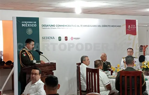 En el marco de la celebración, el jefe castrense afirmó que esta institución actúa siempre velando por el bienestar de la nación, ya que se constituye como garantía de la seguridad y el progreso nacionales. El soldado mexicano antepone los intereses de la nación y el pueblo de México a los personales, al garantizar la seguridad interior, mediante un despliegue a lo largo y ancho de la zona costera del estado de Chiapas.