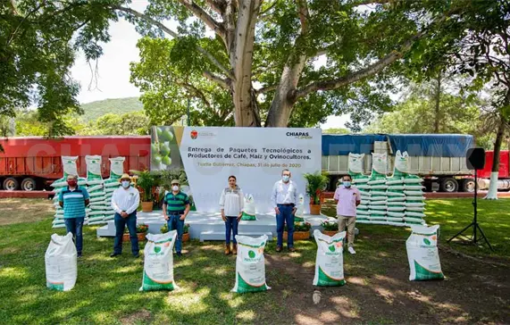 Asimismo, otorgó 250 Paquetes de Fertilizante del Programa Fortalecimiento a la Producción de Maíz en Tiempo de Siembra, para que los productores de café puedan mejorar el potencial de sus parcelas.