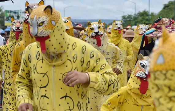 La precipitación no detuvo la salida de los miles de habitantes, los tigres rodaban por los charcos, los chamulas salpican a los espectadores de agua pluvial, no existió más sonido que el carrizo, silbatos, tambores y el “hule jule” de los danzantes.