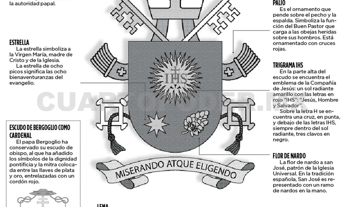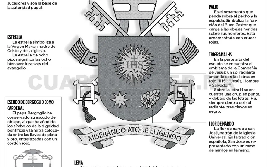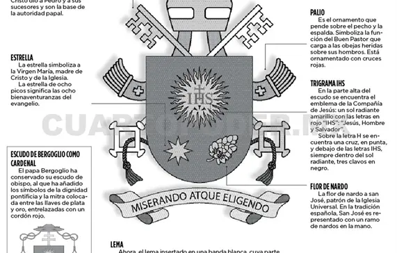 Dentro del escudo, y según las propias interpretaciones proporcionadas por la santa sede, hay una estrella y una flor de nardo, debajo del logo de la Compañía de Jesús, las cuales tienen su significado.