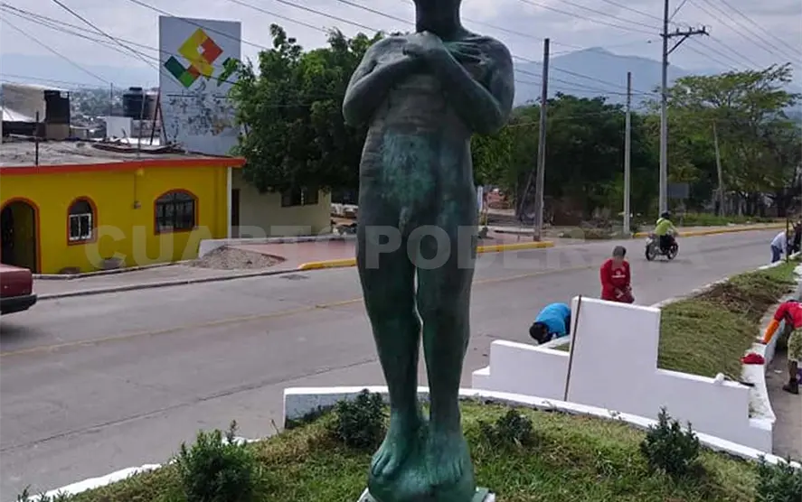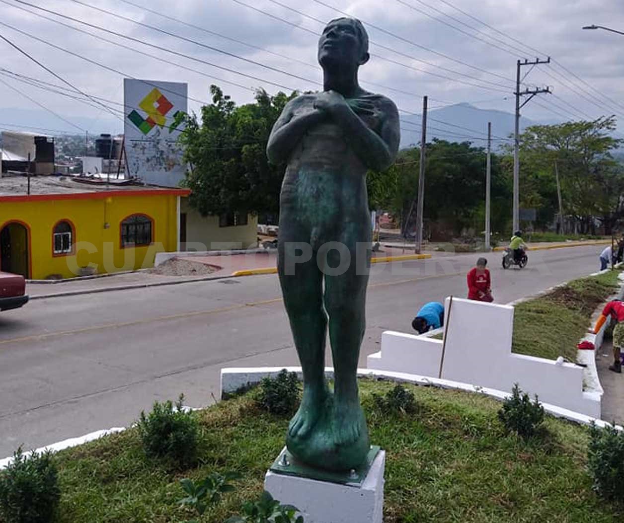 Ahora como parte de la recuperación de espacios públicos que lleva a cabo el alcalde Mariano Rosales Zuarth, “El Hombre del Maíz” fue colocado en su rotonda a petición de pobladores y distintos grupos sociales.