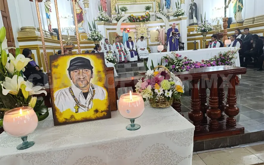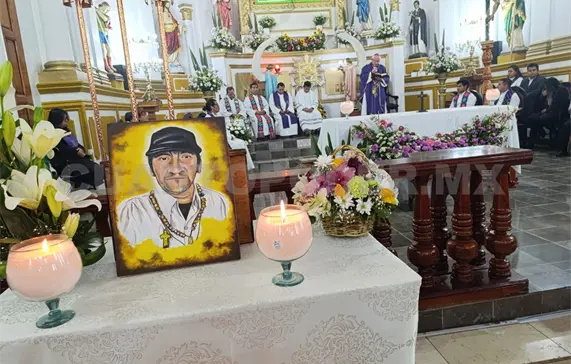 Una vez que personas de la FGE le practicó la necropsia, el cuerpo fue llevada a las dos de la tarde en un ataúd color madera al templo de Guadalupe, acompañado por cientos de personas. Católicos lo esperaban en la plazuela. “Justicia, justicia”, corearon cuando fue bajado de la carroza y subido por varios hombres por las escaleras hasta el templo, donde era esperado por más personas.