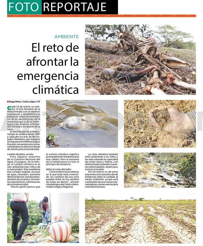 Para algunos expertos de la Comisión Nacional del Agua (Conagua), en el estado, el cambio climático es el reto ambiental más crítico de la humanidad. Este problema trae consigo sequías, escasez de agua, incendios, aumento del nivel del mar, inundaciones, deshielo de los polos, tormentas catastróficas y disminución de la biodiversidad.